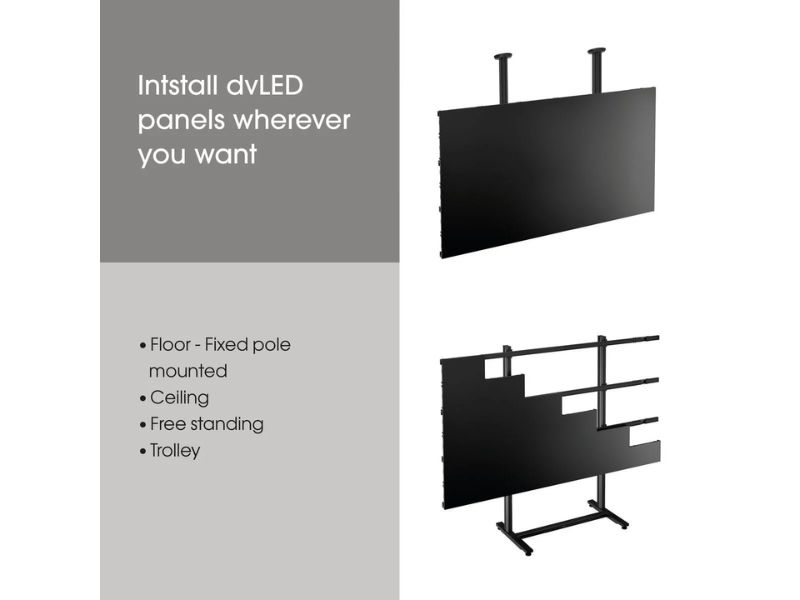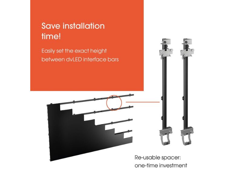 The dvLED Connect-it system from Vogel’s is a universal and modular mounting system that is suitable for most common dvLED brands, series and 16:9 configurations (Full HD, 4K or 8K).