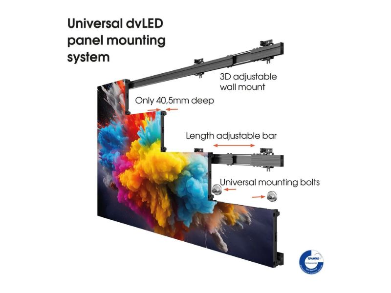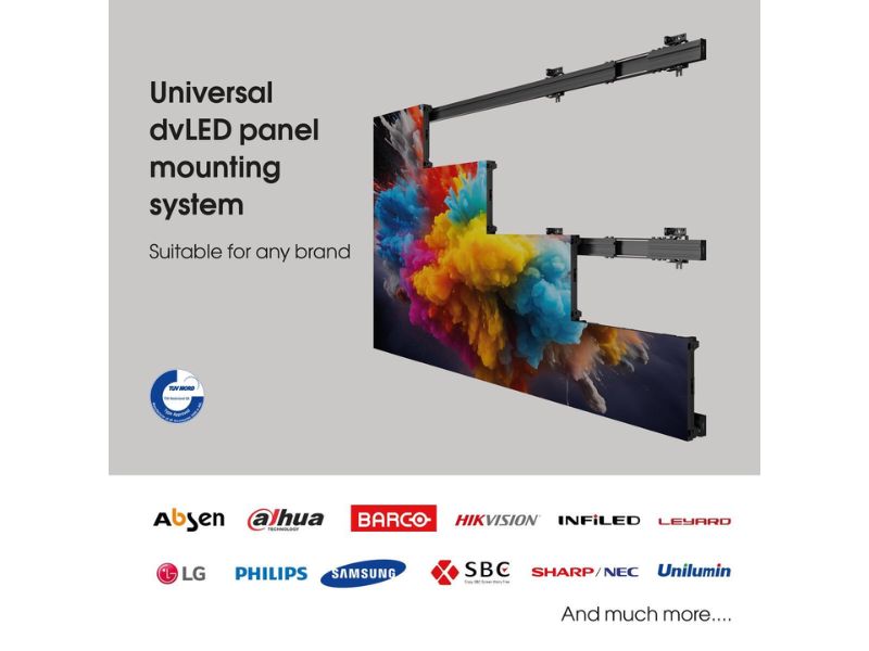 The dvLED Connect-it system from Vogel’s is a universal and modular mounting system that is suitable for most common dvLED brands, series and 16:9 configurations (Full HD, 4K or 8K).