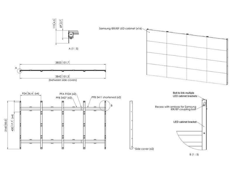 To make your choice easier, we offer specially compiled kits for the most common dvLED series. Simply filter by series and desired configuration and you can purchase the right solution from us. The kit contains all the necessary components for wall mounting your dvLED configuration.