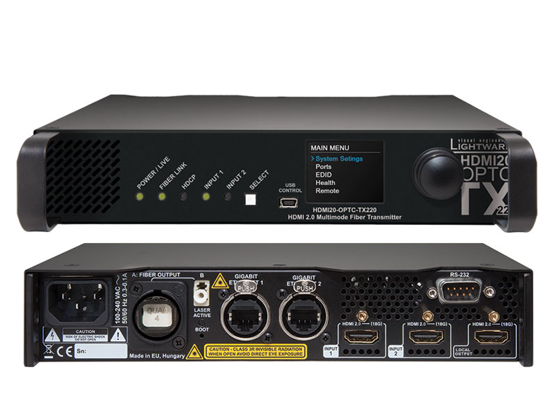 The Lightware product HDMI20-OPTC-TX220-NTQ belongs to the category of OPTC series HDMI 2.0 multimode fiber extenders.